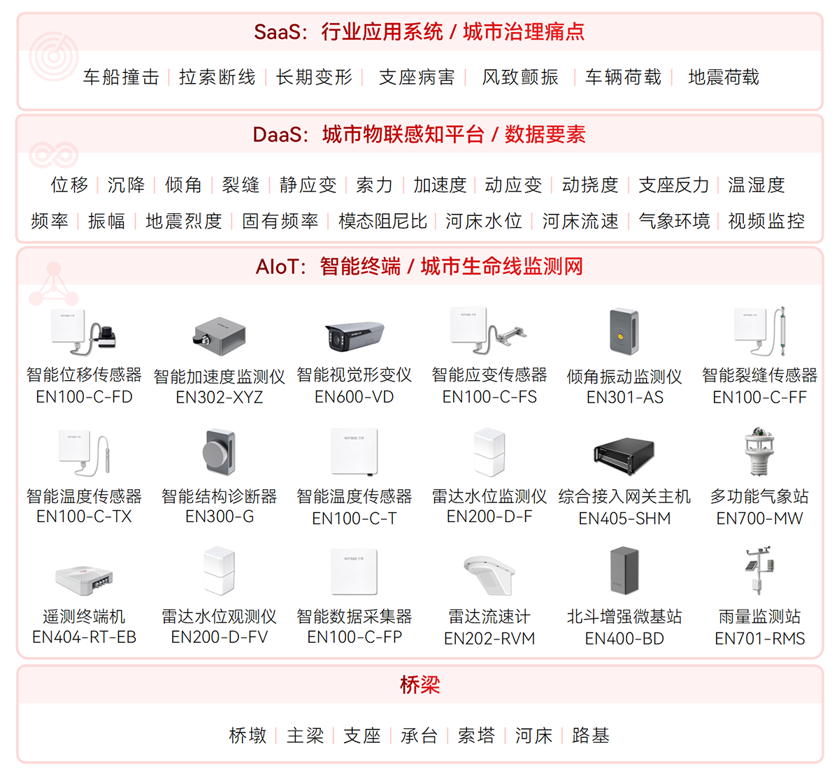 WITBEE?萬賓?是中國首批城市生命線智能監測儀器和大數據服務提供商,提供智能監測儀器、智能基站、云端平臺等智能物聯網技術與產品線,賦能城市排水、供水、燃氣、供熱、橋梁、建筑、隧道、綜合管廊、河湖等城市基礎設施生命線監測感知網絡化建設和智能化管理,對接城市運行管理服務平臺,支撐城市運行“一網統管”,提升城市生命線運行效率和安全,提高城市精細化治理能力。